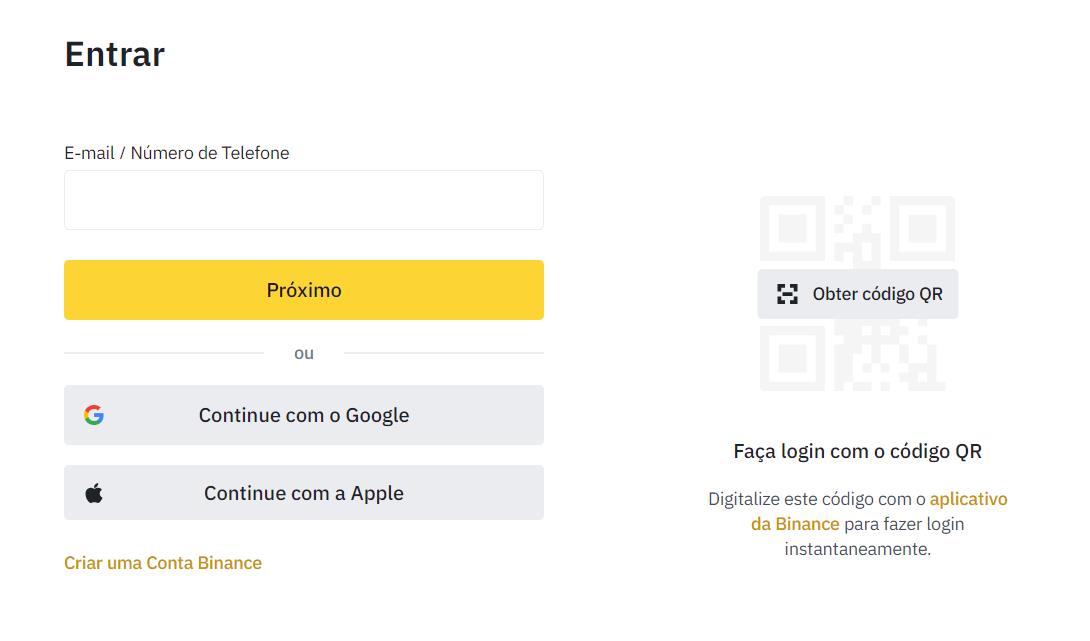 Você será direcionado para o site da Binance, onde poderá fazer login em seu perfil na exchange.