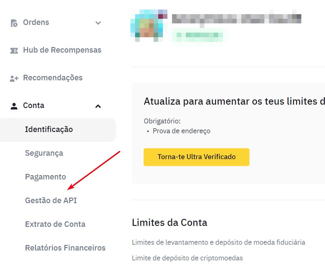 Em seguida, acesse a página Gestão de API para configurar sua chave API da Binance.