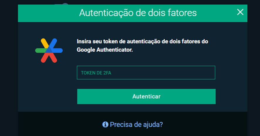 Preencha seu código 2FA e clique no botão [Autenticar].