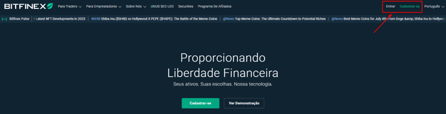 Faça login na sua conta Bitfinex ou crie uma nova.