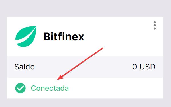 Se tudo for feito corretamente, você verá a Bitfinex adicionada à lista de suas exchanges conectadas com o status Conectada e o saldo de negociação disponível em sua conta.