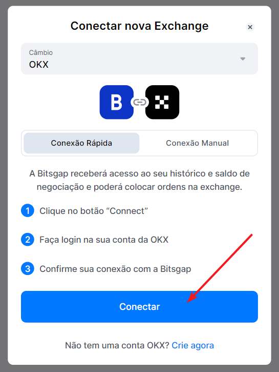 2. Selecione OKX na lista e escolha Conexão Rápida