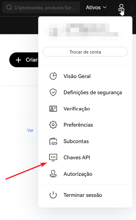 Navegue até a página de Chaves API nas configurações da sua conta (canto superior direito).