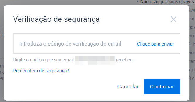 Você receberá um código de verificação em seu e-mail, copie e cole o código. Quando terminar, clique em [Confirmar].