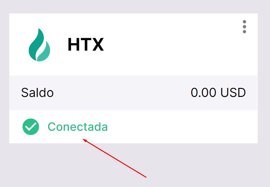 Se tudo for feito corretamente, você verá a HTX adicionada à lista de suas exchanges conectadas com o status Conectada e o saldo de negociação disponível em sua conta.