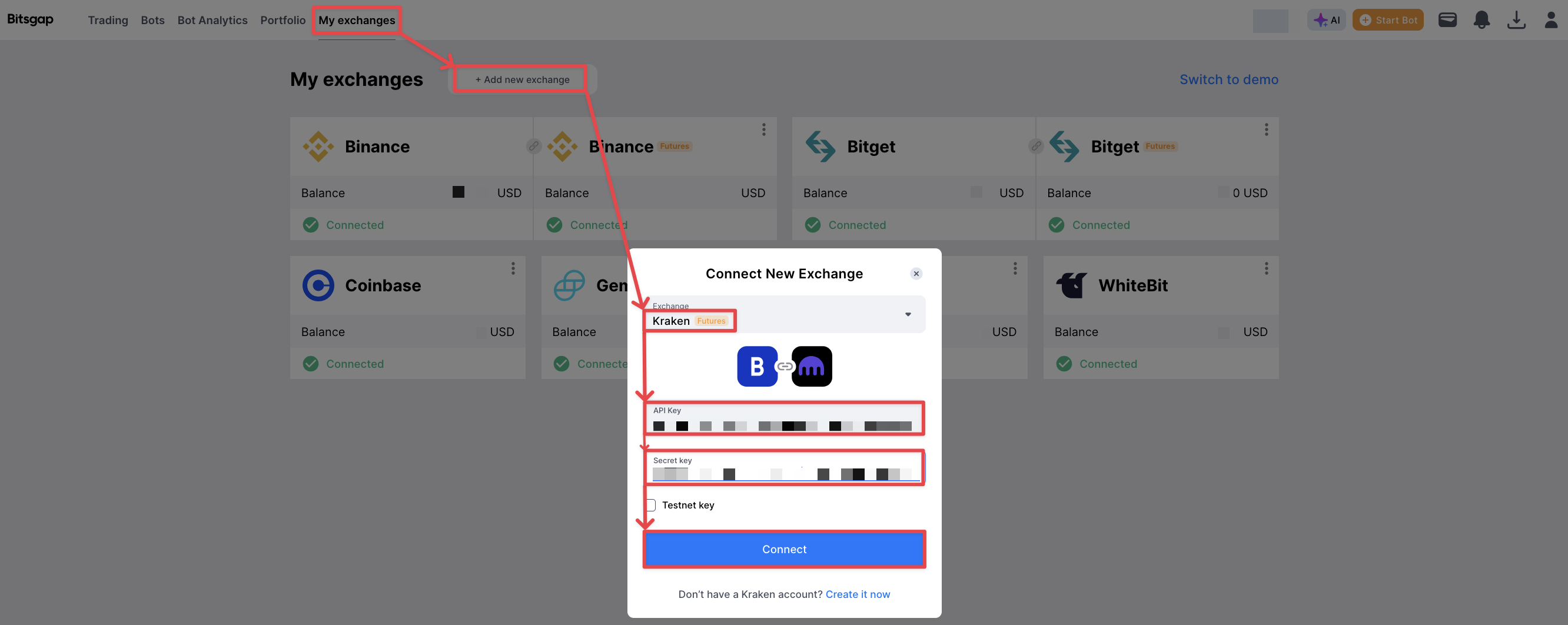 6. Conecte o Kraken Futures ao Bitsgap