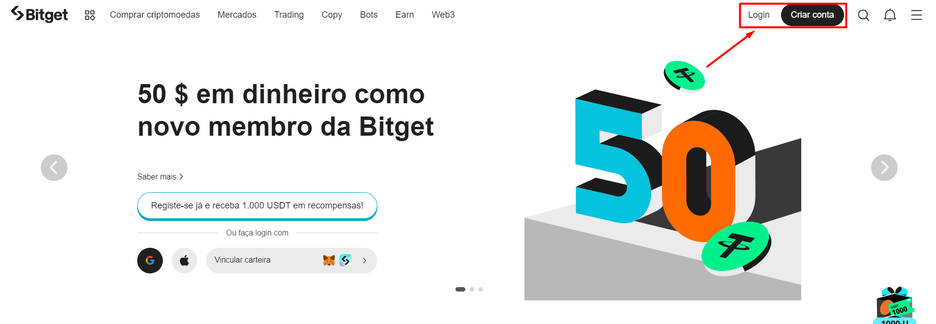 1. Faça login na Bitget