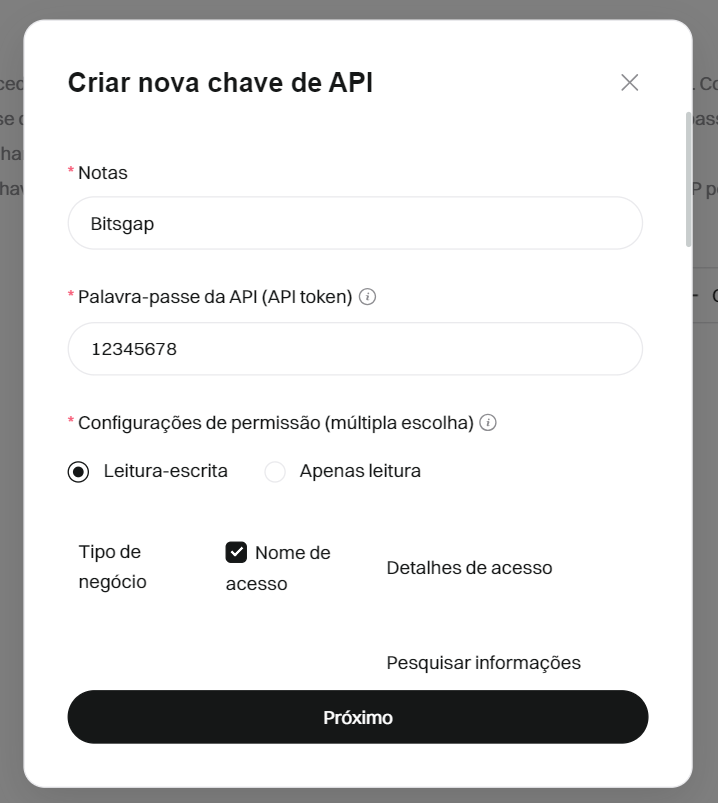 Como criar e configurar a chave API da Bitget