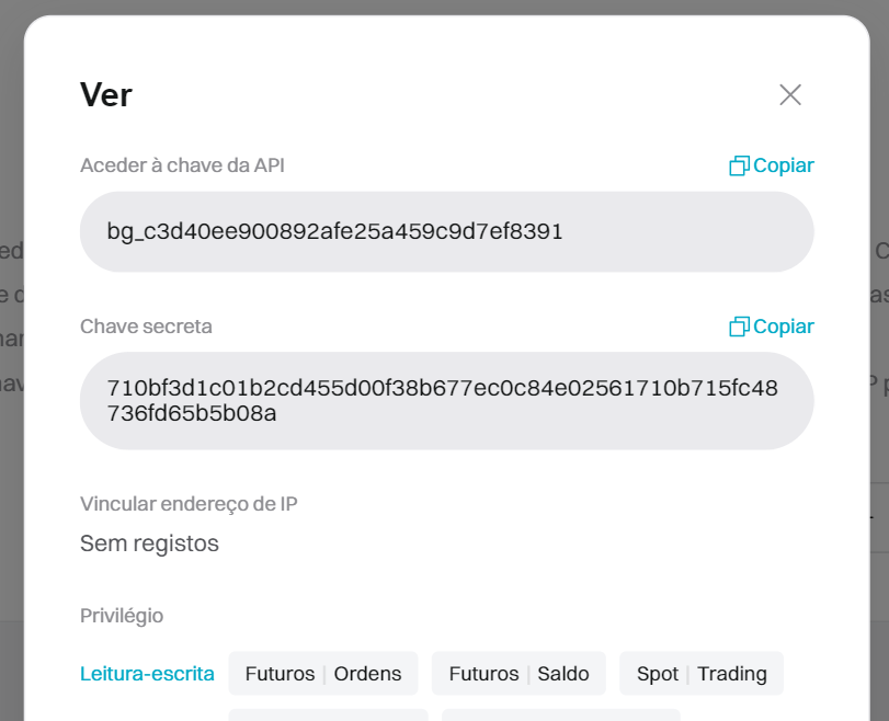 7. Copie sua Chave API e Chave Secreta