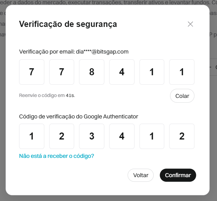 Sem a verificação de segurança adicional, a exchange Bitget não permitirá que você prossiga com a criação de chaves API.