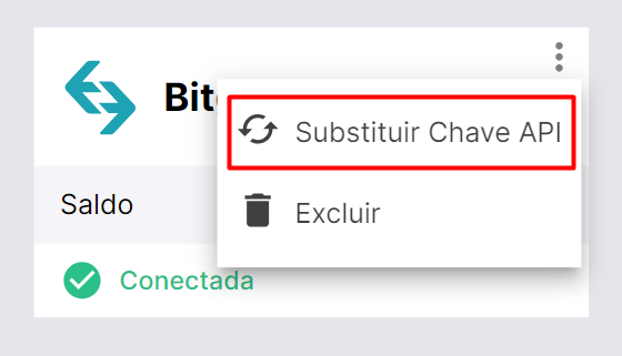 Vá para a página "Minhas Exchanges" e encontre sua chave API da Bitget. Clique em [Mais] (três pontos) no canto superior direito e selecione [Substituir Chave API].