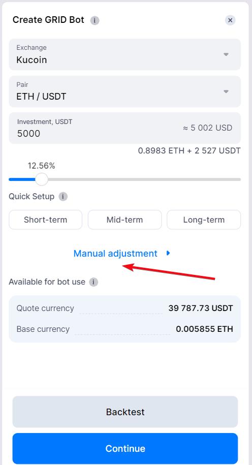 При создании нового GRID-бота в разделе «Ручная настройка» вы можете адаптировать параметры бота под вашу торговую стратегию. Вот как можно эффективно персонализировать эти настройки: