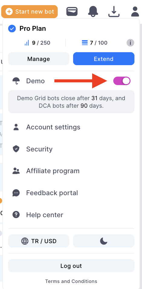 Bitsgap’ın Demo Modu, risk almadan ticaret stratejilerini keşfetmenize ve uygulamanıza yardımcı olmak için tasarlanmış güçlü bir özelliktir. Demo Modu’nu kullanarak, gerçek fonlarınıza zarar vermeden veya borsalarda canlı işlemler yapmadan çeşitli ticaret botlarını ve manuel ticaret araçlarını test edebilirsiniz.