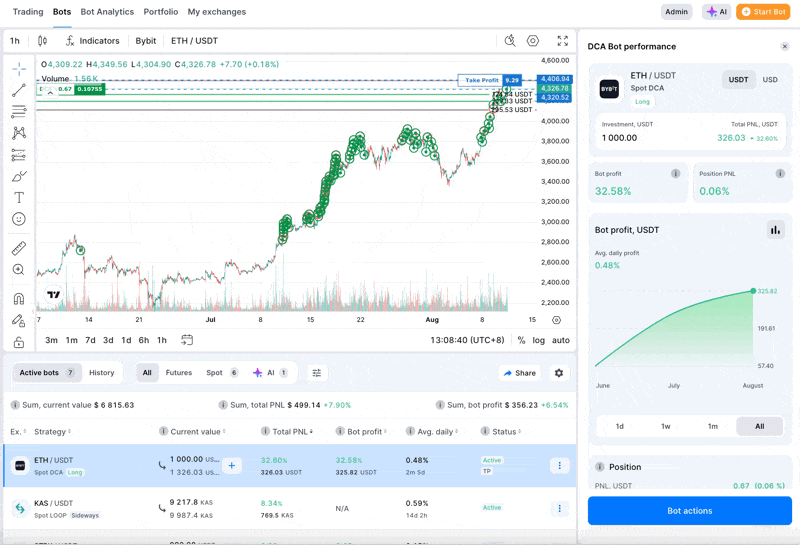 - Toplam yatırım anında artar (bot listesinde ve performans menüsünde).