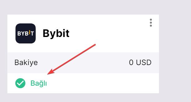 Her şey doğru şekilde yapılırsa Bybit'in bağlı borsalar listenize Bağlı durumuyla ve hesabınızdaki işlem bakiyesiyle eklendiğini göreceksiniz.