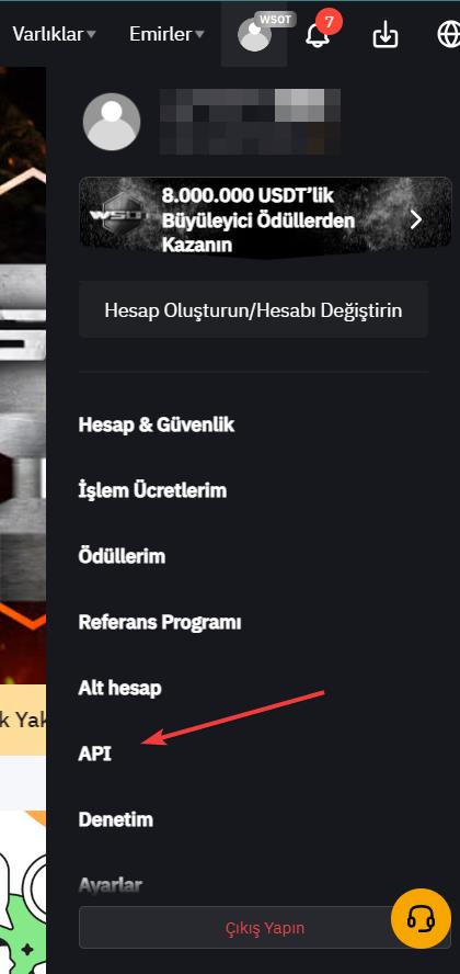 Hesap ayarlarınızdan (sağ üst köşe), API sayfasına gidin.