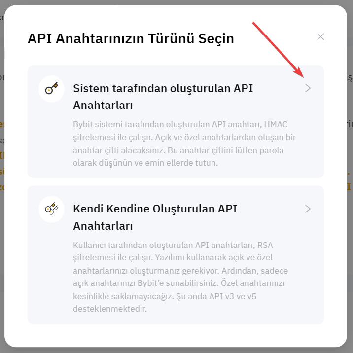 Sistem tarafından oluşturulan API anahtarı türünü seçin.