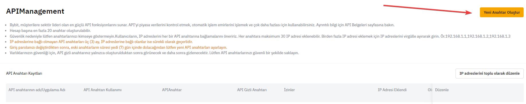Bybit API anahtarı oluşturma