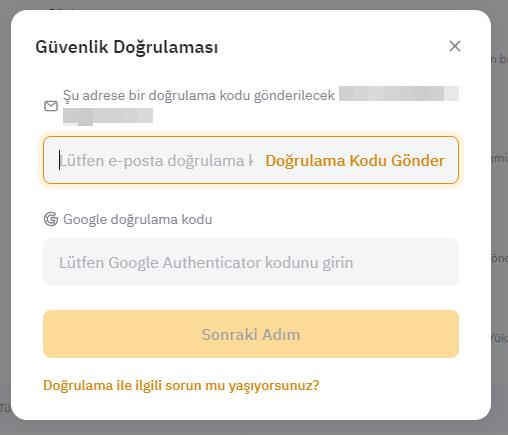 Güvenlik doğrulamasını tamamlamak için e-posta doğrulamanızı ve 2FA kodlarınızı doldurun.