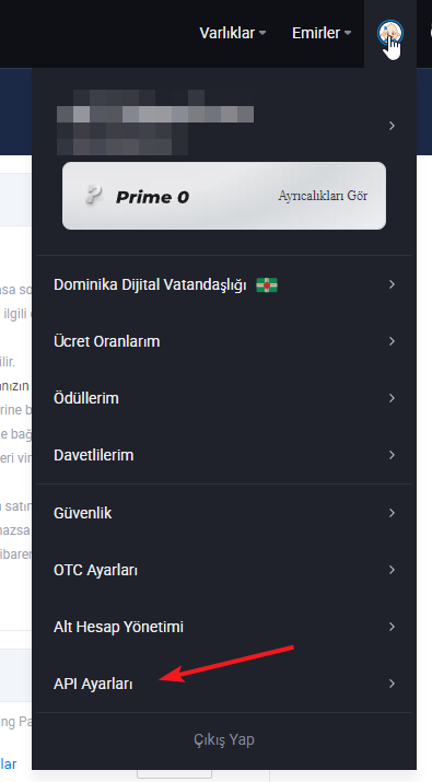 Hesap ayarlarınızdan (sağ üst köşe), API Ayarları sayfasına gidin.