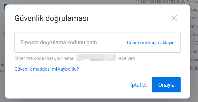 E - postanıza bir doğrulama kodu alacaksınız, kodu kopyalayıp yapıştırın. İşiniz bittiğinde, [Onayla]'ya tıklayın.