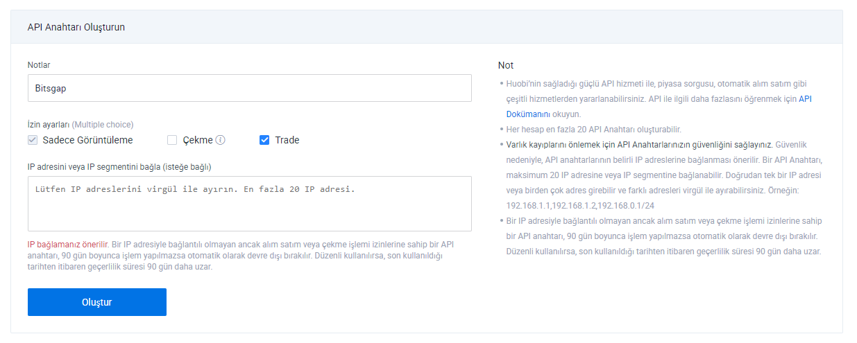 HTX API anahtarı nasıl oluşturulur ve ayarlanır