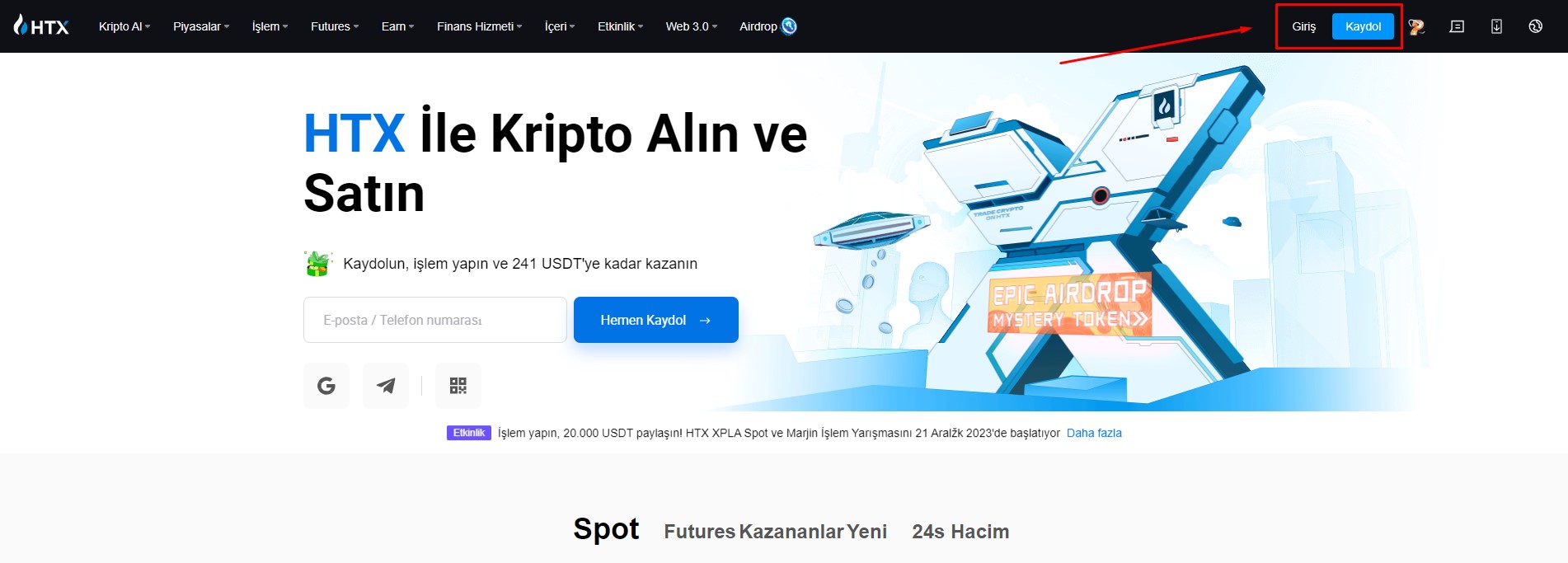 HTX hesabınıza giriş yapın veya yeni bir hesap oluşturun.