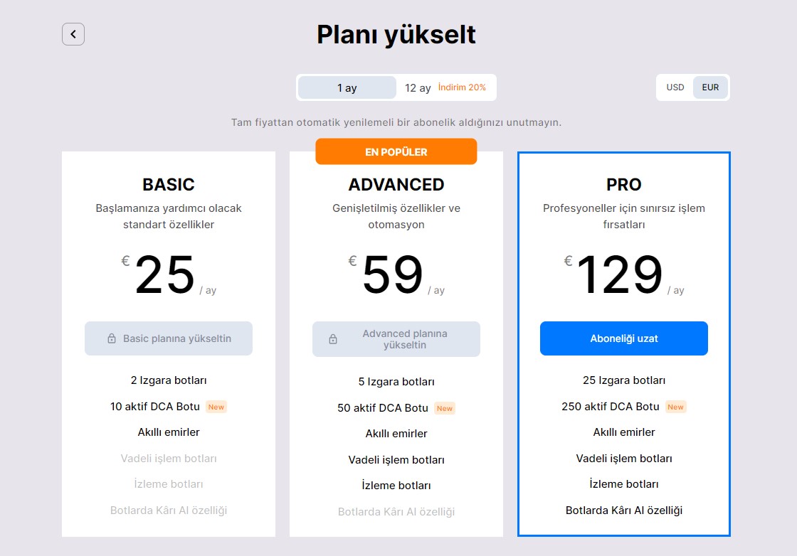 Satın almak istediğiniz abonelik planını seçin ve [Yükselt...] veya [Aboneliği Uzat] butonuna tıklayın.