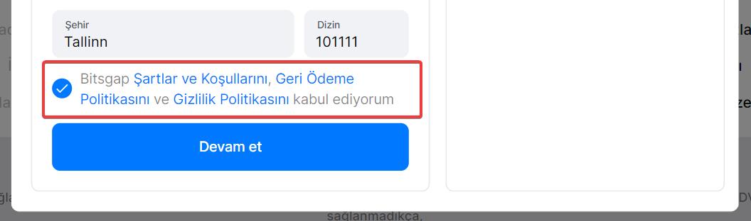 Şartlar ve Koşulları ve Gizlilik Politikasını gözden geçirin ve kabul ettikten sonra [Devam Et] butonuna tıklayın.