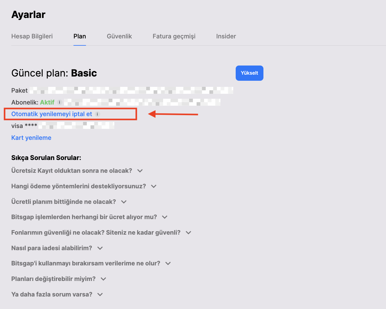 Otomatik yenilemeyi iptal edebilirsiniz. Bunu yapmak için [Aboneliğin otomatik yenilemesini iptal et] butonuna tıklayın. Bu, gelecekteki ödemeleri durdurur ancak aktif botlarınızı veya emirlerinizi etkilemez. Otomatik yenileme hakkında daha fazla bilgiyi bu makalede bulabilirsiniz.