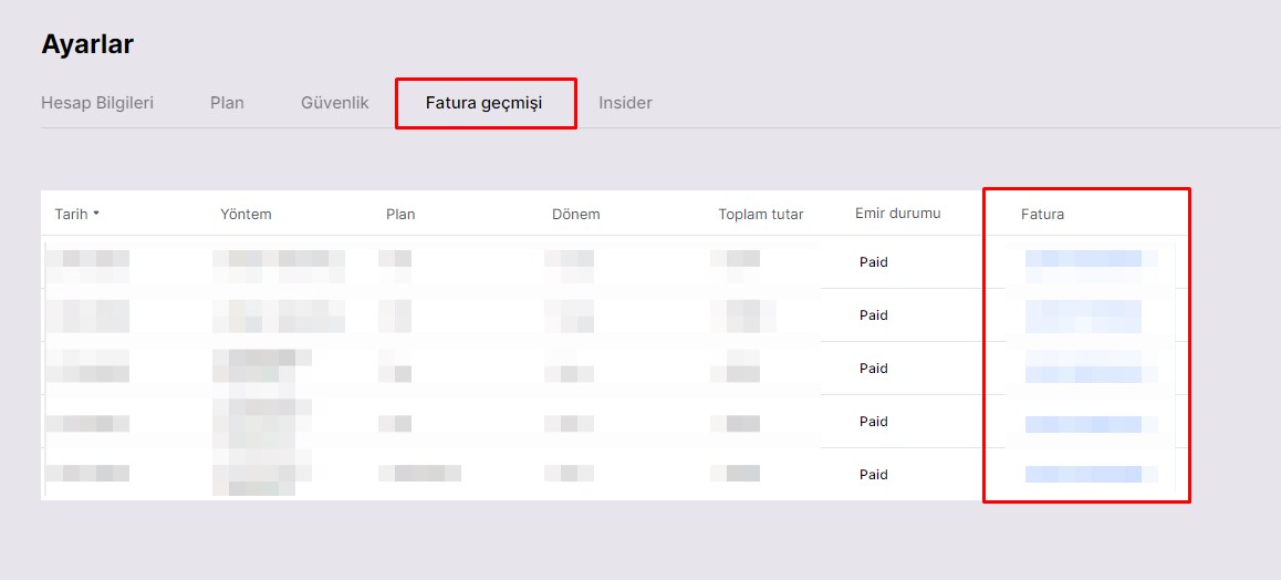 Faturalarınızı görüntüleyin ve indirin, Ayarlar > Faturalama Geçmişi sayfasına giderek faturalarınızı kontrol edebilirsiniz.