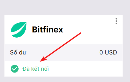 Nếu mọi thứ được thực hiện chính xác, bạn sẽ thấy sàn Bitfinex được thêm vào danh sách các sàn giao dịch được kết nối với trạng thái Đã kết nối và số dư giao dịch có sẵn trên tài khoản của bạn.