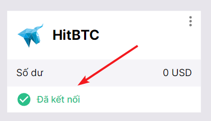 Nếu mọi thứ được thực hiện chính xác, bạn sẽ thấy sàn HitBTC được thêm vào danh sách các sàn giao dịch được kết nối với trạng thái Đã kết nối và số dư giao dịch có sẵn trên tài khoản của bạn.