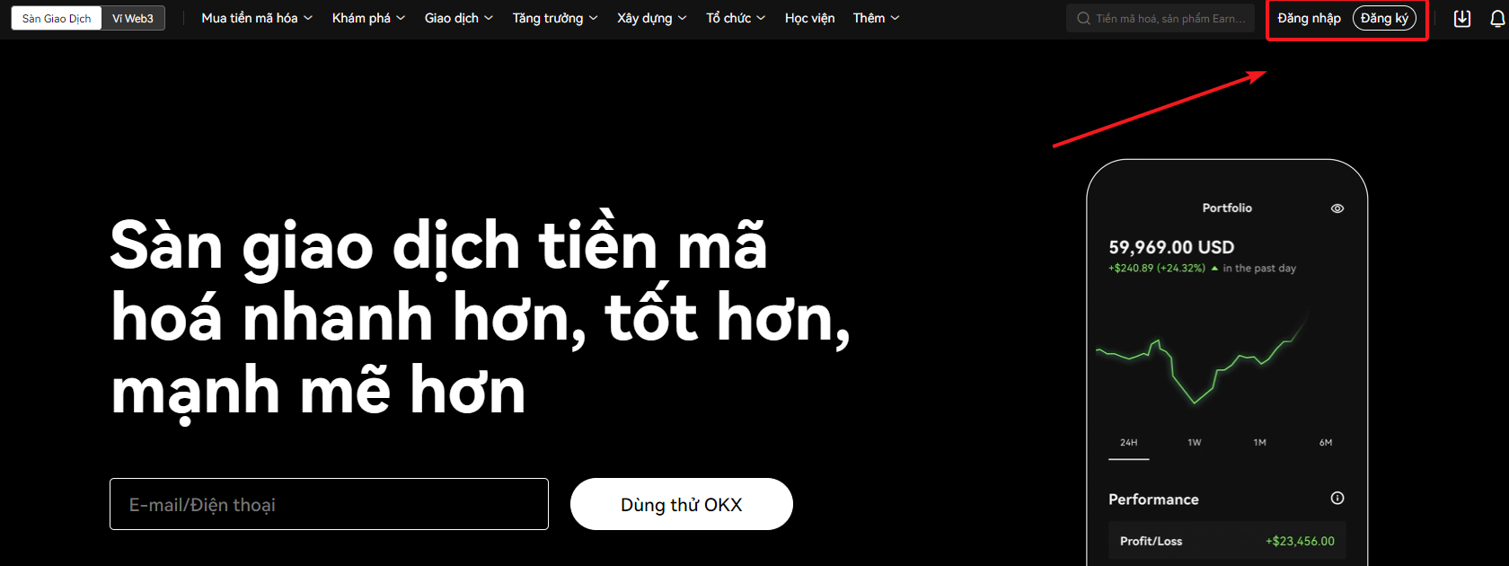 Đăng nhập vào tài khoản OKX của bạn hoặc tạo một tài khoản mới.