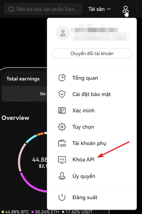 Điều hướng đến trang Khóa API từ cài đặt tài khoản của bạn (góc trên cùng bên phải).