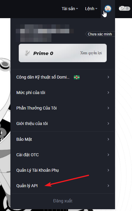 Từ cài đặt tài khoản của bạn (góc trên cùng bên phải), điều hướng đến trang Quản lý API.