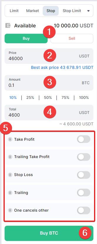 Lệnh Stop chỉ hỗ trợ giao dịch spot, truy cập tại trang Trading.